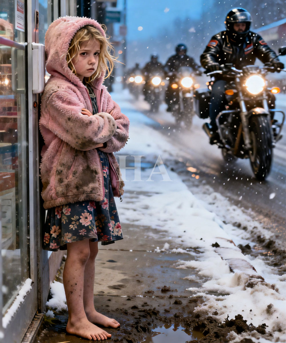 Inside the gas station, the clerk finally noticed, blinking. A little girl outside, and motorcycles? It seemed unreal. Outside, Sophie watched as David dismounted, boots crunching in the snow, walking toward her. She had heard stories of men like him, infamous riders people whispered about, warned children to avoid. Yet here he was, coming for her.