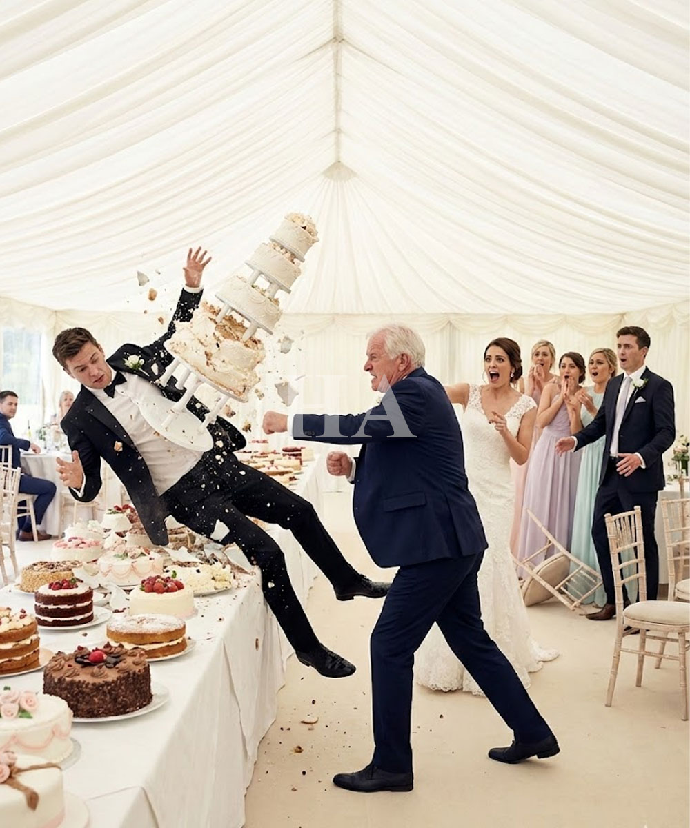 During the cake-cutting ceremony—surrounded by relatives taking pictures—he stormed toward me. Before I could react, he snatched the metal cake stand off the table and swung it like a weapon. It crashed into the side of my head with a sickening thud. My vision exploded into white. I fell backward, smashing into the dessert table as guests screamed.
