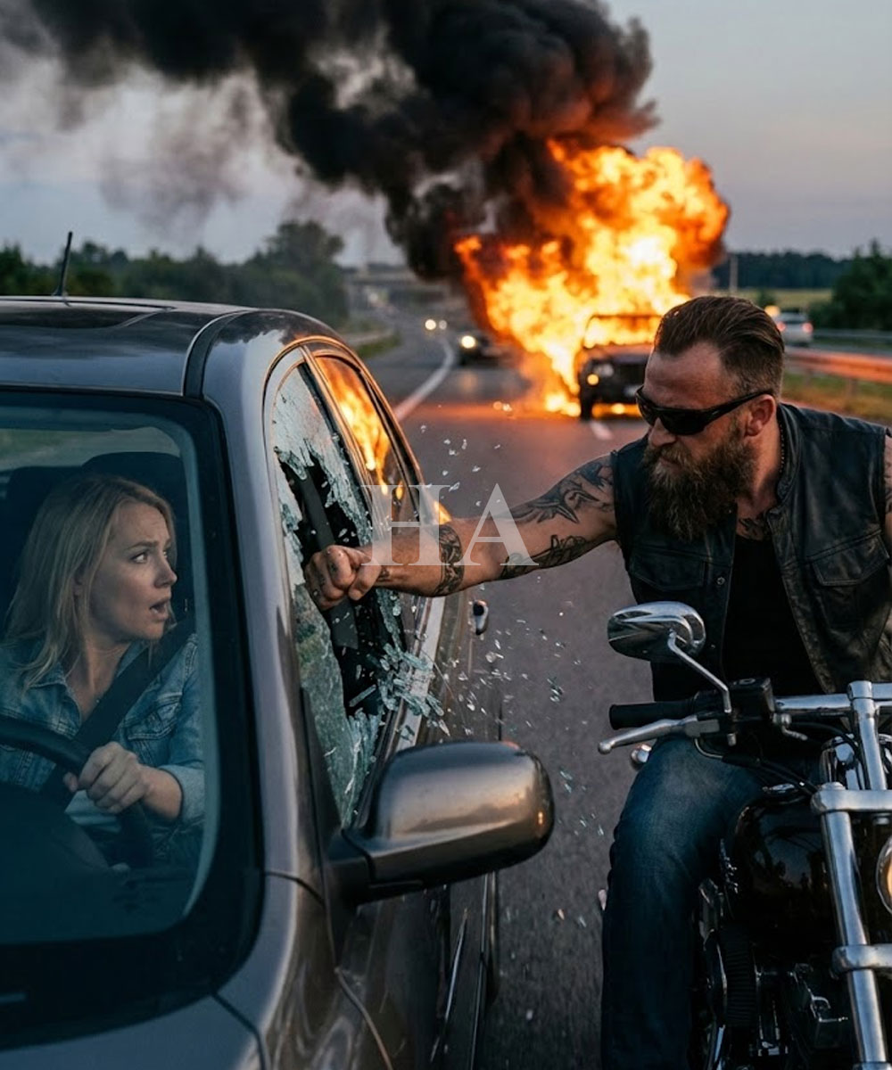 A deep, animal sound tore through the quiet — louder than traffic, louder than my own thoughts. Headlights surged beside me. A massive Harley Davidson swerved into my lane without warning, its chrome glinting under the highway lights.