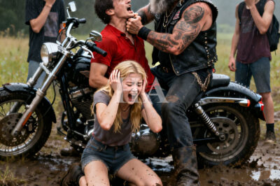 The Three Teenagers Thought It Was Funny to Mock the Blind Girl and Toss Her Cane Into the Mud While She Cried Helplessly in the Park, Not Knowing That a Towering, Scarred Biker Would Suddenly Appear on a Roaring Harley, Take Control, Punish Them, and Then Reveal a Shocking Secret About Her Survival That Left Everyone Frozen and Questioning Everything They Thought They Knew