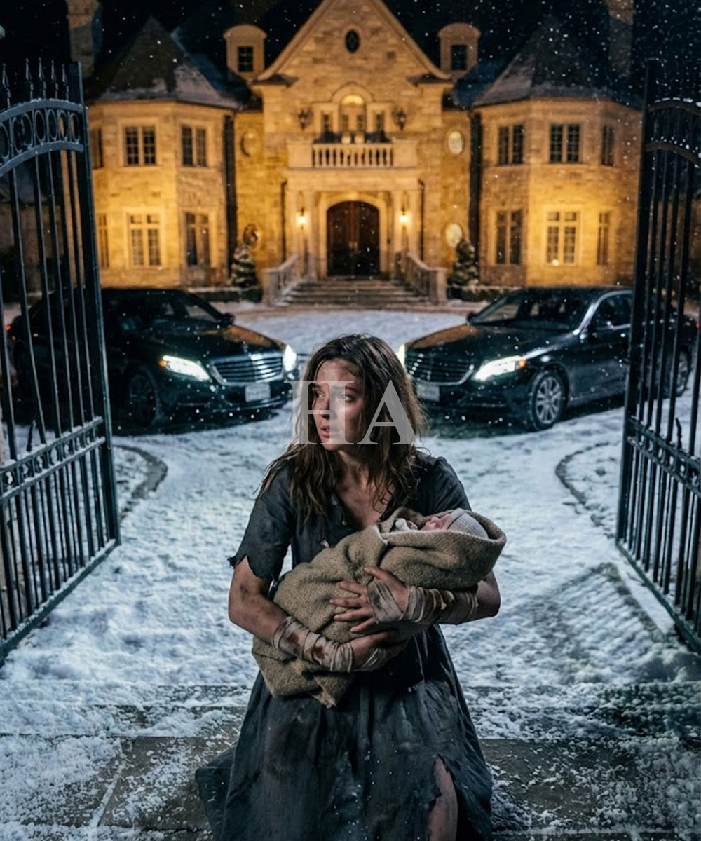 Three black vehicles pulled into the drive, tires crunching against ice, and a man in a dark coat stepped out, holding an umbrella like a shield against the world. He approached carefully, his eyes widening when he saw me collapsed in the snow with a newborn clutched to my chest.