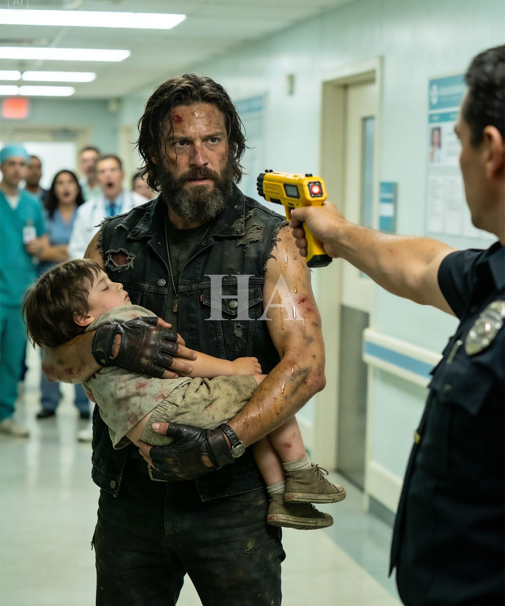 Ethan Cole, head of ER security and former highway patrol officer, stepped forward without hesitation. He’d seen enough chaos to recognize it early. A large, frantic man. A sick child. A situation ready to explode. He positioned himself between the stranger and the nurses’ station, his hand already resting on his belt.