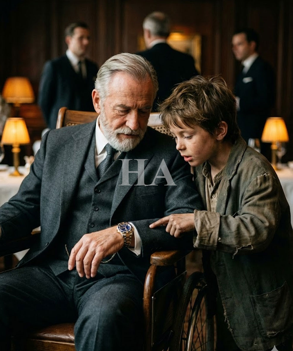 Robert sat frozen, staring at the dirty teenage boy standing near the entrance, restrained by security guards as if he were a dangerous criminal.