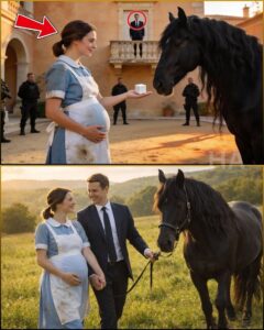 In the paddock below the main terrace of Ravenwood Ranch, a black stallion reared again, all muscle and panic, hooves carving the air with the clean violence of a blade. Men shouted over one another. Someone yelled for tranquilizers. Another guard cradled his shoulder at an angle shoulders weren’t meant to bend, his face a hard mask of pain.