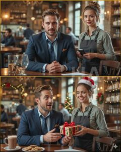 “But seriously,” she continued, more gently now, “no one should eat alone on Christmas Eve. So while I can’t sit with you because I’m technically working, I can stop by between orders and keep you company. Deal?”