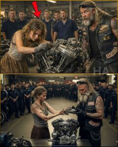 Cross hadn’t always been the villain in Jackson’s story. Twelve years earlier, he’d been a Hell’s Angels mechanic with a gift for engines and a weakness for gambling. He started stealing from club funds, small amounts at first, then bigger, telling himself he’d pay it back before anyone noticed. They always tell themselves that. When the truth came out, it came out publicly, the way club justice prefers. Jackson had stood in front of everyone and said, “Betrayal has no second chances.” Cross was stripped of his colors, his identity, his protection. Humiliation became the fuel that built Diablo Customs, a shop that made aggressive bikes and uglier grudges. Cross didn’t move on. He sharpened. So when he learned a homeless girl had fixed Jackson’s sacred Harley and was being treated like family, Cross smiled without humor. “If I break her,” he told his crew, “I break him.”