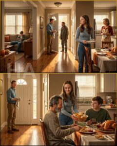 By the following Thanksgiving, I had a different kind of excitement. I wasn’t setting the table with a defensive, small thought; I was setting it with a warmth that made the plates look like they belonged there. This time when the doorbell rang it wasn’t a fragile, anxious sound. I walked to the door and there he was—David—clean-shaven, hair trimmed, khakis and a button-down shirt. He walked like a man who had seen rough weather but carried an umbrella anyway.