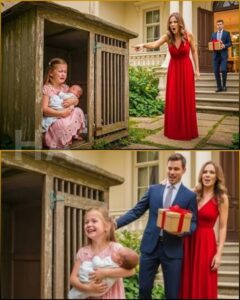 A little girl hugged her 10-month-old brother tight, tears streaming down her face as her stepmother dragged her toward the old doghouse and forced her to sleep there. In total despair, she sobbed and begged, “Please, don’t make us stay here!” But at that very moment, the front gate swung open, and the millionaire father returned, doing something that left everyone in absolute silence.