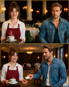 He blinked, startled—not by the words, but by the warmth behind them. The speaker was a young waitress with bright brown eyes and a name tag that read Harper Wells. Her energy cut through the stiff silence of the Magnolia Bistro like sunlight through fog.