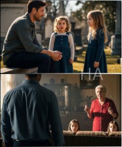 Two little girls knelt on the grass beside the grave, their shoulders hunched, small fists pressed to their faces. They had the same chestnut hair he remembered from the woman who used to braid it, the same wide brown eyes he could have sworn were his. They wore matching red sweaters, dirt on their knees, and the oldest—if five could be called an oldest—held a small, lopsided bouquet of wildflowers.