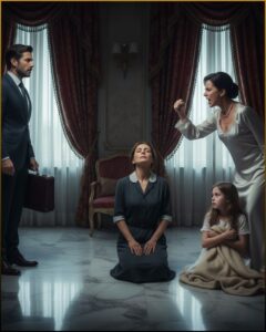 He crouched, and his knees whispered against the floor. Maria’s palms were raw, knuckles scratched by the marble when she had taken the fall for Sofia. Her face was a map of fatigue; her hair, always tied in a neat bun, had escaped into loose strands that framed the lines of a life lived in service. She shook her head when Roberto asked, and the silence she offered was its own language. “No, sir,” she said with a voice that had been trained in humility. “You arrived just in time. But it’s not the first time he’s yelled at her.”
