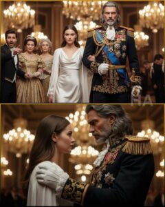 The man was tall, broad-shouldered, with dark hair threaded through with silver. He wore a simple military-style coat, not flashy, not ceremonial, but the posture beneath it carried authority the way some people carried arrogance. His face was weathered, stern, the kind of handsome that didn’t ask permission. His eyes were gray and steady, like stone that had seen storms and stayed.
