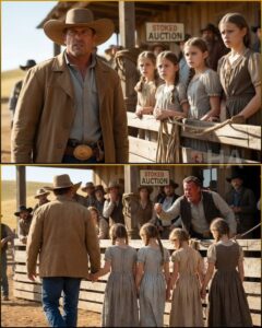 The auctioneer, Wesley Crowe, cleared his throat and raised his hand. He was the sort of man who could sell anything because he had trained his conscience to nap on command. “Lot twelve,” he barked, voice booming across the damp square. “Four healthy girls, capable of domestic work, general service, and farm labor. Starting bid: twenty dollars each, or seventy for the lot.”