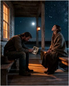 She followed him up the steps, across the porch, into warmth. The front room held a stone fireplace, a braided rug, furniture that looked hand-carved and cared for. It smelled like woodsmoke and coffee, like the sort of place where people belonged.