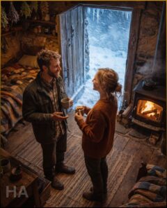 Caleb’s gaze moved to the small woodpile stacked inside. Not large. Not nearly enough for a conventional cabin through deep winter. She watched him calculate. She also watched him think about his own cabin, its chinks and drafts and hungry iron stove, the endless labor of cutting and hauling and splitting. The realization entered him slowly, like cold entering boots.