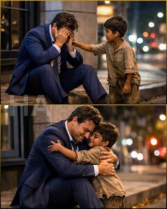 He wrapped his arms around this barefoot child and sobbed as if his body had been waiting for permission to be human again. It wasn’t polite crying. It wasn’t the kind you dab away with a tissue and pretend never happened. It was deep, shaking grief, the kind that comes when you realize you have spent years building the wrong life, then losing it is the first honest thing that has happened to you in a long time.