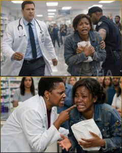 Officer Bryant turned, his grip loosening out of instinct. “Dr. Foster, sir. This woman was caught attempting to leave with medication she hasn’t paid for. Standard shoplifting protocol.”
