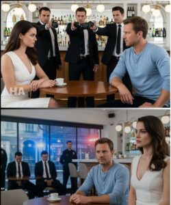 His hand moved slightly on the table, palm down, a small signal meant to keep her still. “Three men. Came in a few minutes ago. One by the entrance. One near the kitchen. One by the bathroom hallway. They’re positioned to control exits.”