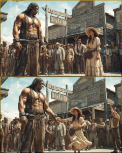 Sheriff McCrae raised his hands as if he were announcing a raffle. “Step right up, folks,” he called, voice thick with authority and a salesman’s shine. “We got ourselves a genuine wild one. Caught him stealin’ horses off the Crowley spread. Judge says he’s to be sold to cover the damages.”