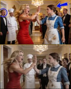 The servants lined the walls like shadows. A few bodyguards stood near the door, men whose shoulders looked carved from threat. They didn’t intervene. They never did. Not when Vivian’s fury flared. Not when her hand rose.