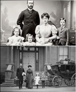 A father stood stiffly behind a seated woman. Three children flanked them, unnaturally still, dressed in their finest clothes, as if breath itself had been rationed by the photographer. The father’s posture was rigid, defensive. The children’s expressions held that peculiar mix of obedience and confusion only old photographs seem to capture.