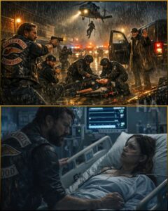 Ethan didn’t waste the time wondering who was on the other end. He shrugged out of his leather cut, the Hell’s Angels patches gleaming under the streetlight, and folded it carefully beneath the woman’s head so her skull wouldn’t grind against asphalt.