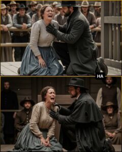 Allora Callaway stood on the raised platform in the center of the barn as if she were a thing the men could pass around—an object with seams and price tags. Her dress had once belonged to her mother, the fabric thinned at the elbows and patched where a child’s thumb had worried it raw. The collar was yellowed, the lace gone to threads. A bonnet shaded her face, but it did little to hide the bruise along her jaw, the pale purpling that a man’s hand had left. She kept her hands clasped in front of her, knuckles white. She breathed shallowly, counting her breaths until they stopped meaning anything.