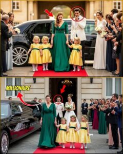 A sleek black limousine rolled up to the entrance. The chauffeur stepped out and opened the door. First came three little girls, identical triplets, dressed in pastel yellow gowns, holding hands. Then, stepping gracefully behind them, was Emily Carter—elegant, composed, and radiant in an emerald-green dress.