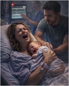 Then Harper’s body forced the story into a new chapter with no warning. One night, pain woke her like a hand grabbing her from inside, rhythmic and ruthless, folding her in half as if her body had decided it was done waiting for circumstances to improve. She pressed both hands to her belly and felt terror surge, because she wasn’t ready and she was still learning how to stand upright. Jacob was at her door in seconds, shoes half-tied, face alert, already moving, and he woke Emma gently with a calm that didn’t frighten her. In the car, the streetlights smeared into lines through Harper’s watery vision while Emma whispered, “It’s okay, it’s okay,” like she was casting a spell strong enough to hold labor back. At the hospital, nurses moved fast and efficient, and Harper’s fear wasn’t only about birth; it was about being alone again in the exact moment she needed someone not to leave. Jacob stayed in the waiting area without demanding access or making the night about him, and that restraint made his presence feel even more solid. Emma swung her legs on a plastic chair and told the vending machine it owed her lucky chocolate, because children believe luck can be negotiated if you speak firmly enough.