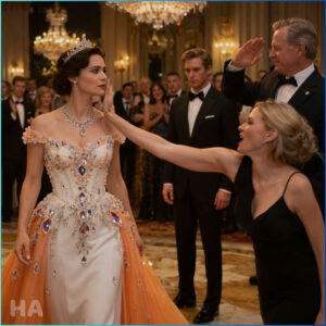 For one stunned second, the room looked not elegant, not exclusive, not powerful, but primitive. A hundred custom tuxedos and couture gowns, and at the center of all that money stood a woman who had just been struck in public while her husband watched.