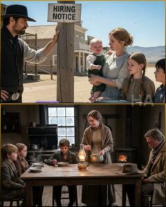 She swallowed once, fingers tightening on the edge of her shawl. “My husband… he’s been gone six months. We stayed as long as we could with his brother’s people, but winter is kinder to some than it is to others. They asked us to move on.” She lifted her chin, a small, quiet rebellion. “I work hard. I don’t ask charity. We can sleep in the barn if needed, but my children need warmth. If you’ll have us, I can cook, mend, wash, keep your kitchen running from dawn to night.”
