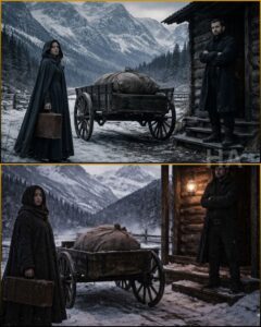 She was slight, but she landed on the uneven trail with steady feet. Her dress was worn but clean. Dark hair pinned neatly, even after miles of cold and bumping roads. When she lifted her eyes to meet his, there was no fear in them, only calm, like she had already made peace with whatever came next.