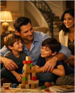 The twins arrived for their first weekend visit looking like they were walking into an exam they might fail. Noah would not meet Ethan’s eyes, and Theo kept asking if he was in trouble, his voice small with the fear of being discarded. Ethan crouched to their height and told them something they had never heard from an adult who held power over them. “You’re safe here,” he said, slowly enough for the words to settle, “and you don’t have to earn your place.” Their faces flickered with disbelief, because conditional love had been the rule in their world, and rules were hard to unlearn. Rosa stood behind Ethan, quiet and steady, and when Ethan gestured for her to come closer, the boys ran to her first. Ethan let them, because he was not competing for their comfort; he was learning from it. That night he did something the old Ethan would have considered ridiculous: he sat on the floor and built a crooked tower of blocks until it collapsed and all three of them laughed. Later he read a bedtime story badly, messing up the voices, and they giggled anyway, the sound warm enough to soften marble.