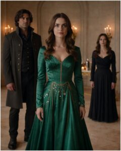 A gown in deep emerald green, silk so fine it moved like water in the late afternoon light. The bodice was structured, elegant, with delicate gold thread woven along the neckline. The skirt fell in gathered folds that suggested money, patience, and someone who’d never had to apologize for taking up space.