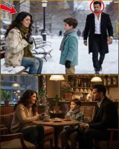 Eight years old, maybe. Too small to be alone at this hour, but dressed in clothes that looked expensive even under layers: a navy peacoat, leather gloves, boots without scuffs. His cheeks were red from the cold, his eyelashes dusted with snow. He stopped right in front of her and took a breath that trembled.