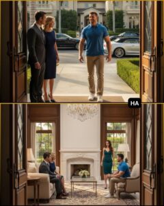 Ethan Cole stood just beyond the entryway, his palms damp against the neck of a bottle of Bordeaux. His tie felt too tight, his smile too careful. He’d faced tougher crowds before—lecture halls, academic panels—but nothing compared to meeting the parents of Claire Harrington, the girl who’d somehow made him believe the world could be kinder.