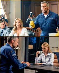 Eliot stood behind his cart, mop handle in hand, the cheap rubber grip pressing pale into his palm. The mop was an absurd thing to grasp in the middle of a courtroom full of suits and law books, but his fingers, callused from hard days, tightened with an instinct that surprised him even then.