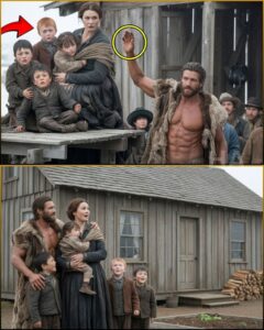 On the raised platform near the podium stood Eliza Hart, her shoulders drawn inward as though she could make herself smaller and therefore harder to hit. She held her youngest, three-year-old Benny, on her hip, his face buried against her neck, his thin arms clinging like he feared the world might yank him away by force. Around her skirt clustered the rest of her children: Caleb, ten and too serious for his years; Molly, eight, pale-lipped and watchful, a girl who had learned silence could be armor; and the twins, Luke and Levi, six, red-nosed and shivering in patched coats that had been mended so many times the original fabric had become a rumor.
