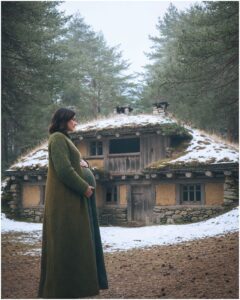 The house didn’t rise from the ground so much as it belonged to it. Half buried into the slope, its roof covered in grass and moss, as though the mountain had decided to keep it under its arm. Thick timber walls darkened by age. Packed earth shaped by hands that had known patience.