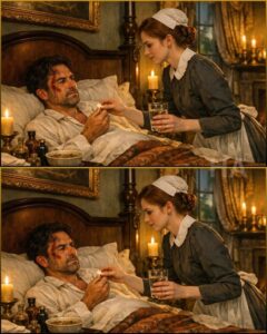 She moved quickly, refilling a glass from the decanter and lifting his head gently. His skin was too hot under her fingers. He drank like someone who had been stranded in a desert of fever.