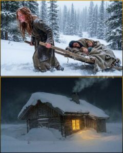 She broke planks from the ruined wagon, lashed them together with rope into a crude drag sled, and with gritted teeth rolled the man onto it. The girls she tucked under her own coat one at a time while fastening the makeshift harness around her waist. The first stretch uphill nearly threw her to her knees. The second stole her breath. By the third she stopped counting. She only leaned forward, dug her boots into the mountain, and pulled.