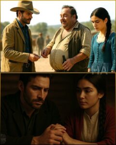 The laughter changed, turning into something more curious, as if the men weren’t sure whether to mock him or study him. The drunk’s grin widened in triumph. He shoved his palm out, and Wyatt dropped the coin into it. The man closed his fingers fast, then yanked the rope forward to hand the girl over like a tool.