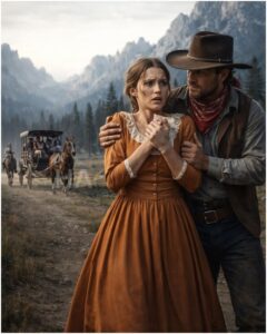 The stagecoach interior smelled of leather, sweat, and the ghost of every nervous passenger who’d ever sat inside it. Naomi climbed in and found herself across from a middle-aged woman with kind eyes and a face softened by hardship. Beside the woman sat a young couple, their hands entwined with the sticky devotion of new marriage.