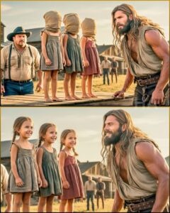 A nervous auctioneer stood on the platform, eyes darting toward Clay Rourke like a mouse checking for hawks. “We’ll start at ten dollars for the lot,” he called, voice thin. “Do I hear ten?”