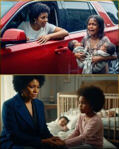 Through the blur of rain, their eyes met—fear and desperation against wealth and emptiness.