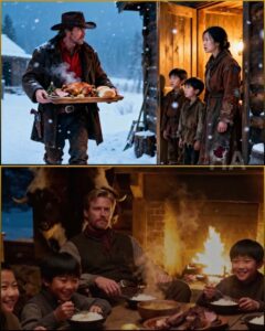 Behind her, the cabin held its breath. No sizzle of fat. No clink of plates being set with purpose. No bright argument over who got the last biscuit. Only the wind and the faint creak of the loft above, where four children slept in a cluster of quilts and hunger.