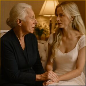I stood paralyzed. My heart pounded. Before I could react, she widened her eyes and gestured for silence. That look was not a joke. A primal fear seized me, making my hands tremble as they clutched at my wedding gown. At that moment, I could clearly hear the footsteps of my new husband approaching the room.