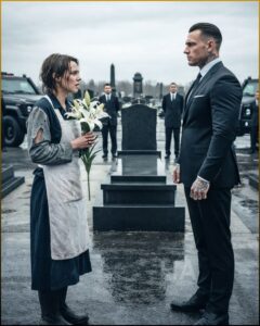 He was tall, built like someone who had never needed to raise his voice to be heard. His coat was dark wool, soaked through. He held no umbrella. The rain slid down his sharp cheekbones, darkened his hair, and he didn’t flinch. He stared down at the grave with an intensity that didn’t belong in a cemetery.