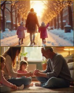 Outside, the city glittered and the snow kept falling. Inside, plates were cleared, crayons scattered, and a photograph was taken—one they would look at years from now and not remember precisely when the changes began, only that there had been a time before and a time after, like two seasons that proved the heart could weather winter and still learn spring.