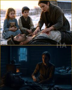Together, they dragged the man inside one boot at a time, their breath coming in harsh bursts. The stranger groaned once, a sound scraped from somewhere deep. By the time they laid him on Sarah’s cot, his hands were shaking so hard the blanket fluttered.